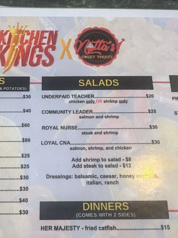 Customers rave about the flavorful dishes, such as the jerk chicken wings with a perfect balance of sweet and spicy, and the creamy macaroni and cheese reminiscent of a southern cookout. Dessert options like the strawberry cheesecake are not to be missed, with rich flavors that leave a lasting impression. The cozy ambiance, attentive service, and vibrant decor add to the overall dining experience at Kitchen Kings x Natta’s Sweet Treats. It's a must-visit spot for a delightful meal with a touch of soulful flair.