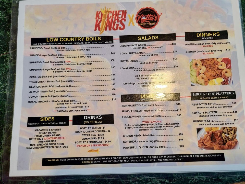 Located in Augusta, GA, Kitchen Kings x Natta’s Sweet Treats offers a unique fusion of seafood and baked goods in a welcoming environment. With a diverse menu that includes jerk chicken wings, macaroni and cheese, and sweet potato pie, this Black-owned establishment aims to satisfy all taste buds.